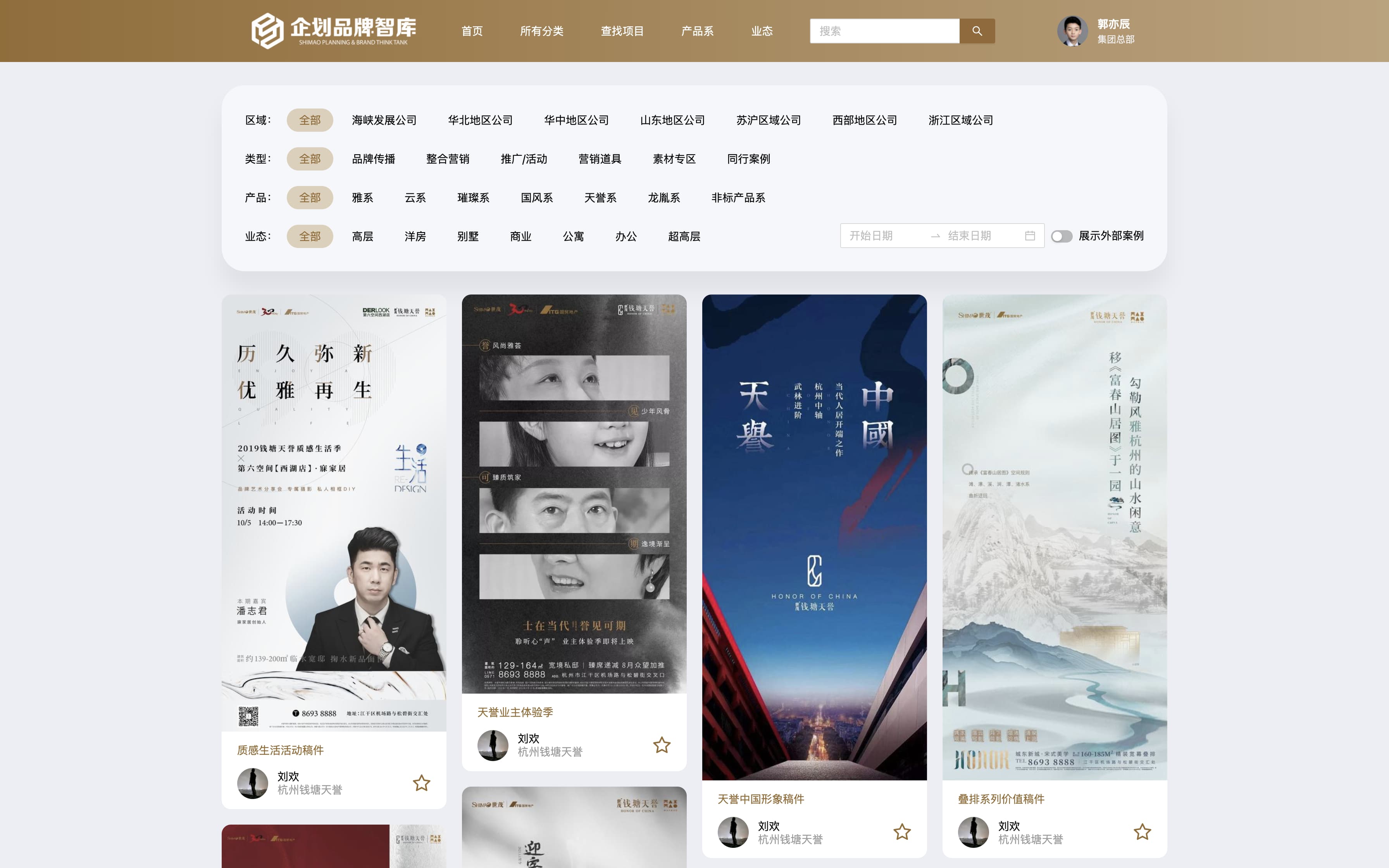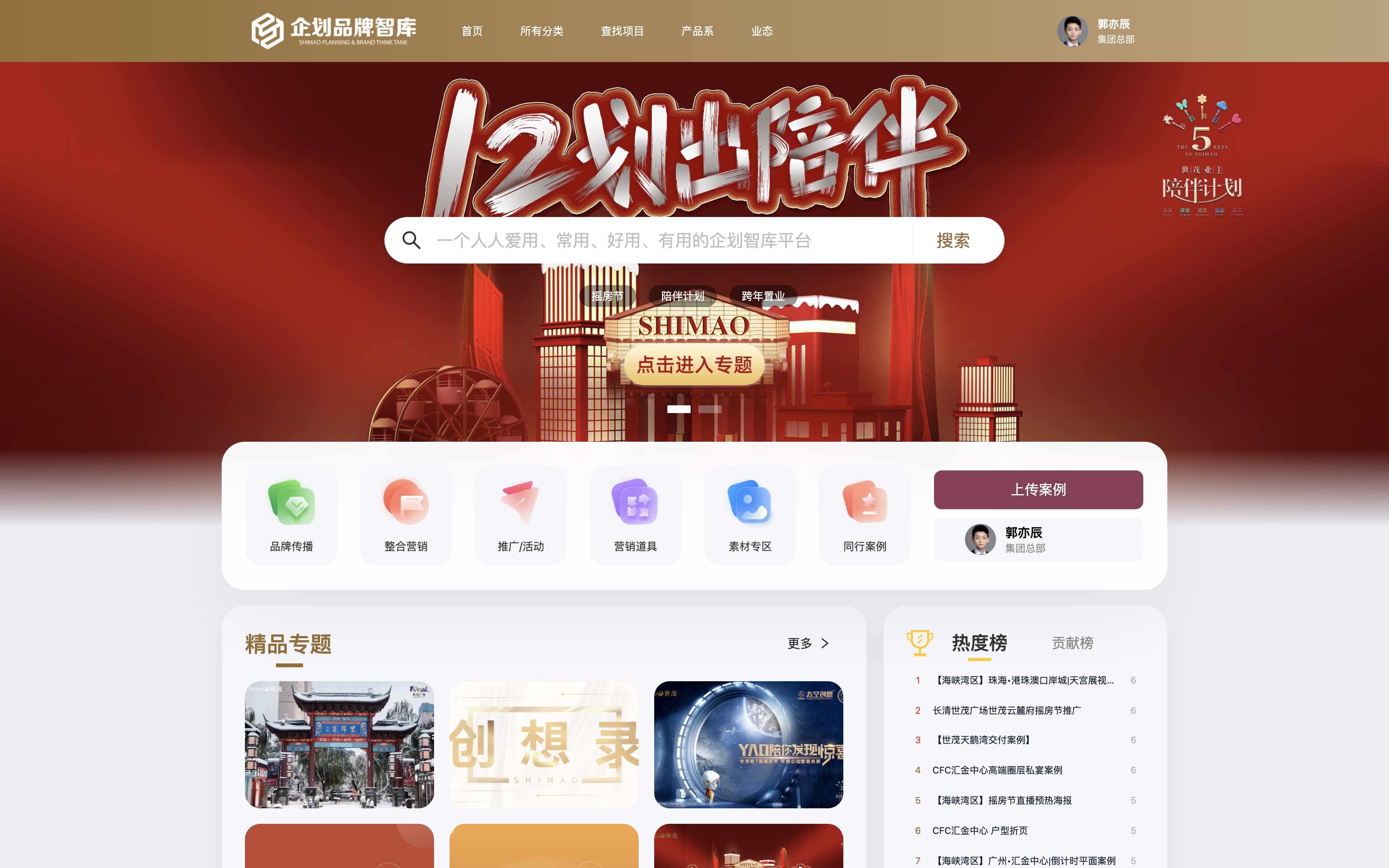 企划品牌智库 - 面向内部用户分享、展示和下载案例和参考材料,向物料供应商共享原始文档,沉淀品牌资产。